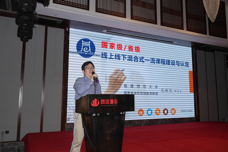 2020年11月6—8日,2020年第一期福建省高校教师混合式教学能力提升研修班在莆田顺利开班。本期研修班受“高校在线开放课程联盟联席会”指导,由福建省高校在线联盟主办,福建师范大学网络与继续教育学院、福建在线教育研究中心承办,高等教育出版社、全国高等学校教学研究中心、视睿电子科技有限公司(希沃)协办。教育厅高教处林素川调研员,北京市教学名师、北京理工大学李凤霞教授,全国教师教育课程资源专家委员会秘书长、原高等教育出版社教师教育出版事业部主任、视睿电子科技有限公司(希沃)魏振水副总裁,福建师范大学网络与继续教育学院党委书记黄松青,联盟副秘书长范新民等出席了本次研修班。开班仪式由范新民副秘书长主持。各高校教务处、教师发展中心、教育技术中心、院系教学工作负责人,已获省级立项(含培育)建设和高校重点支持建设的线上线下混合式一流课程、线下一流课程的负责人或主讲教师共38所高校近300人参加了此次研修班。