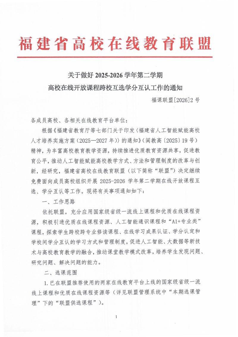 关于做好2025-2026学年第二学期高校在线开放课程跨校互选学分互认工作的通知